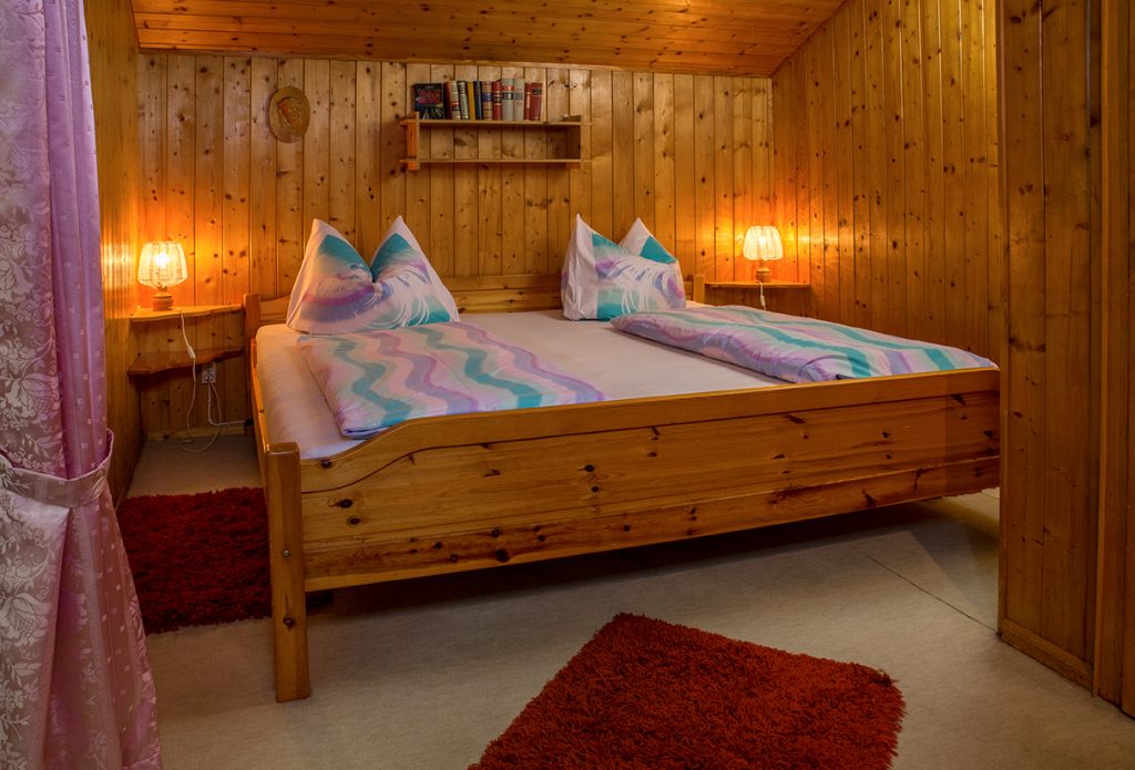Separates Schlafzimmer mit Doppelbett. Hier kann auf Wunsch auch ein zusätzliches Kinderbett (Kleinkind) aufgestellt werden